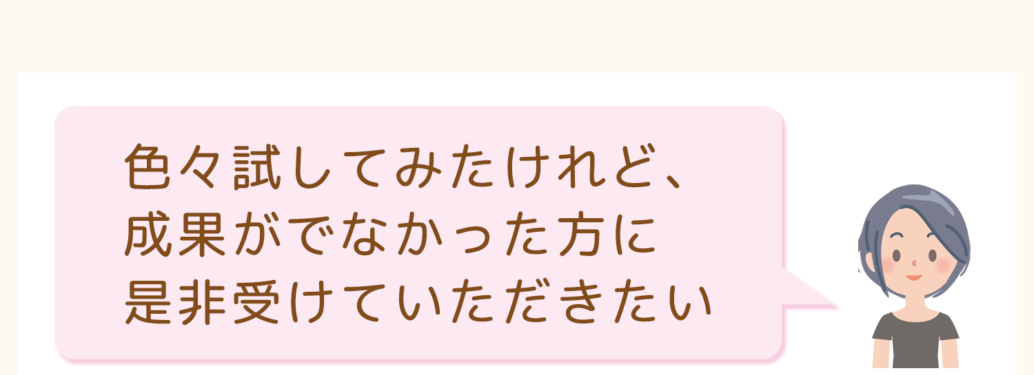 色々試してみたけれど、成果がでなかった方に是非受けていただきたいです。