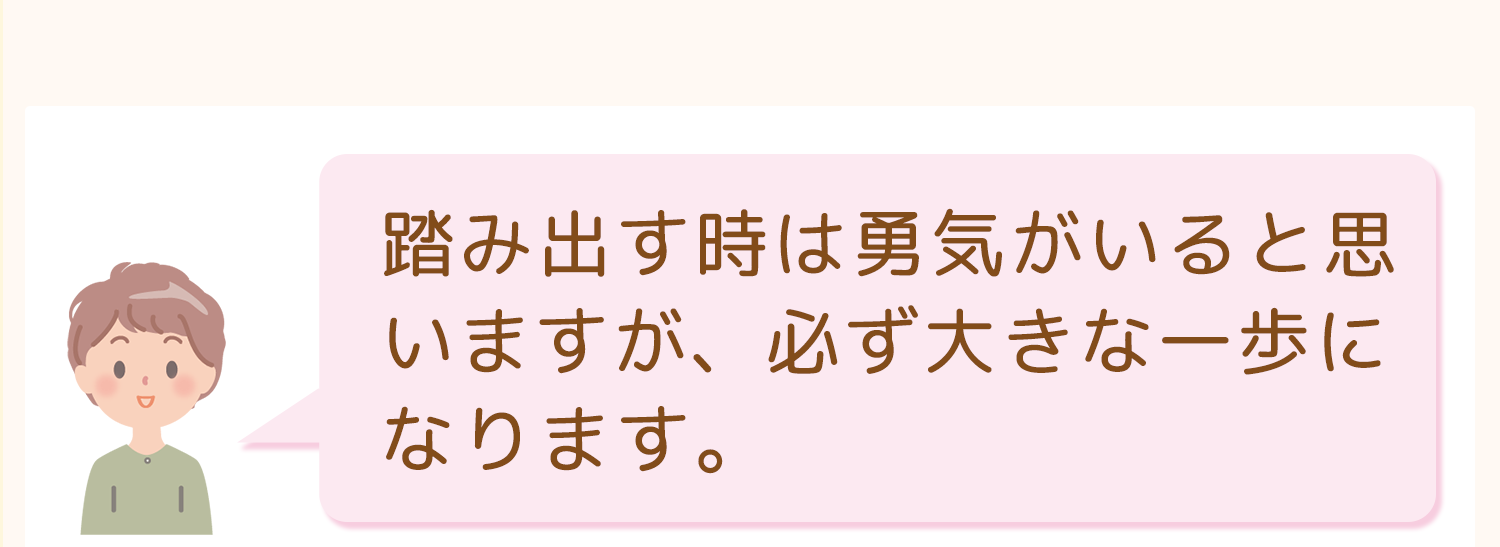 踏み出す時は勇気がいると思いますが、必ず大きな一歩になります。