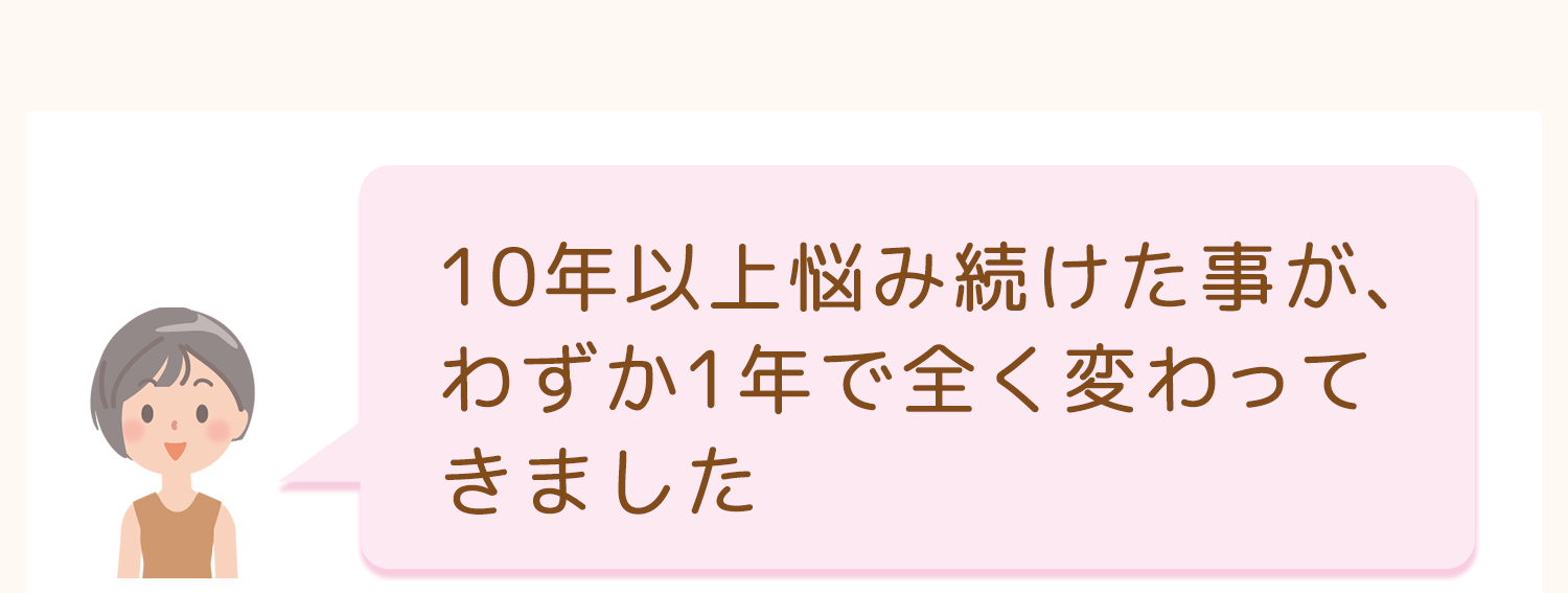 今では、10年以上悩み続けた事が、わずか1年で全く変わってきましたよ😊❣️