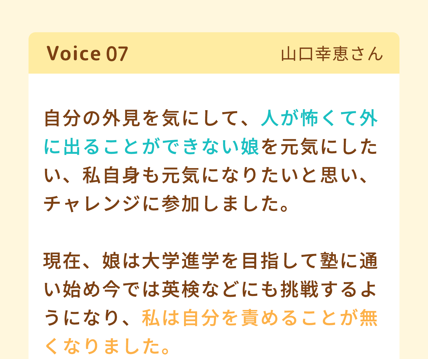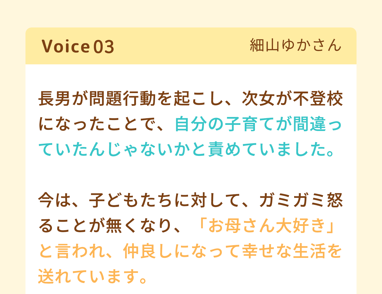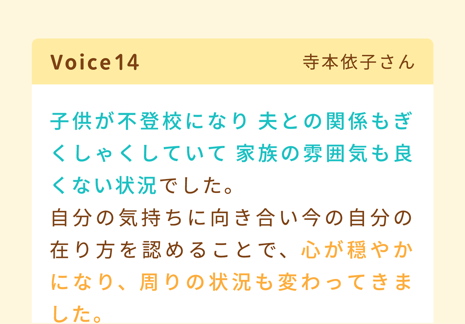 このおかげで、私たち家族の絆が深められたのだと今は感謝の気持ちで思えるようにまでなれました。