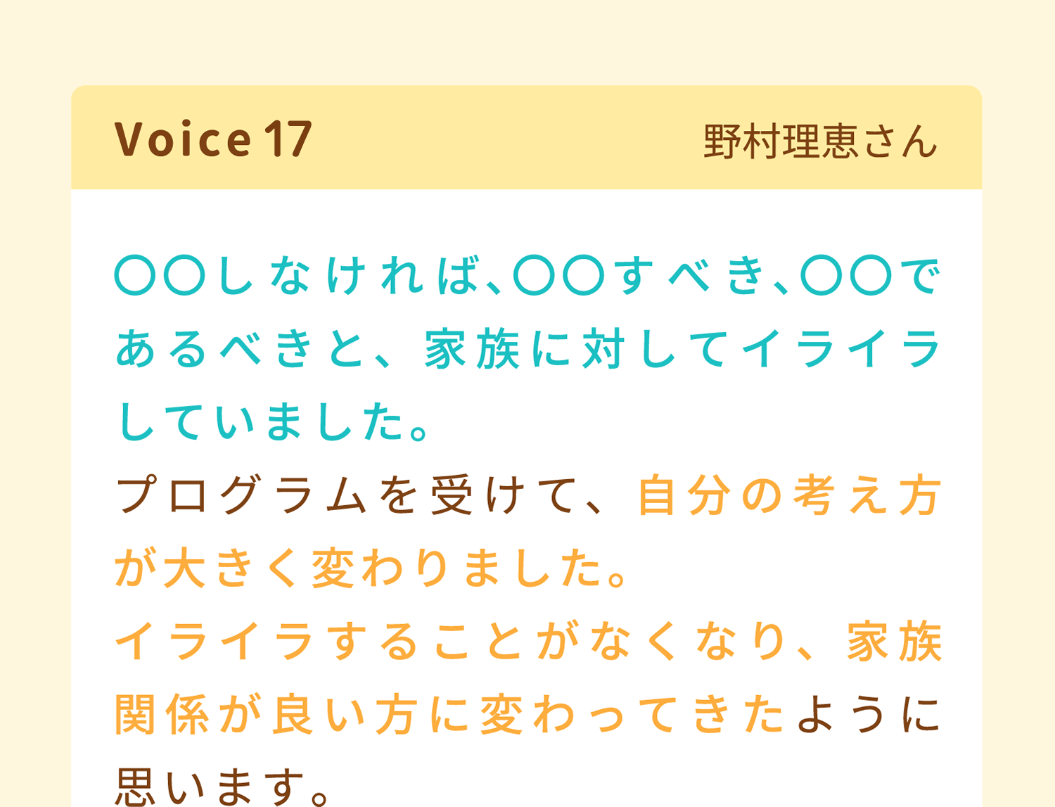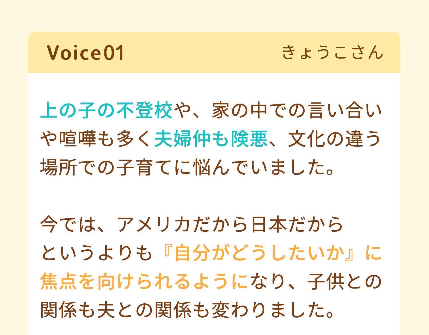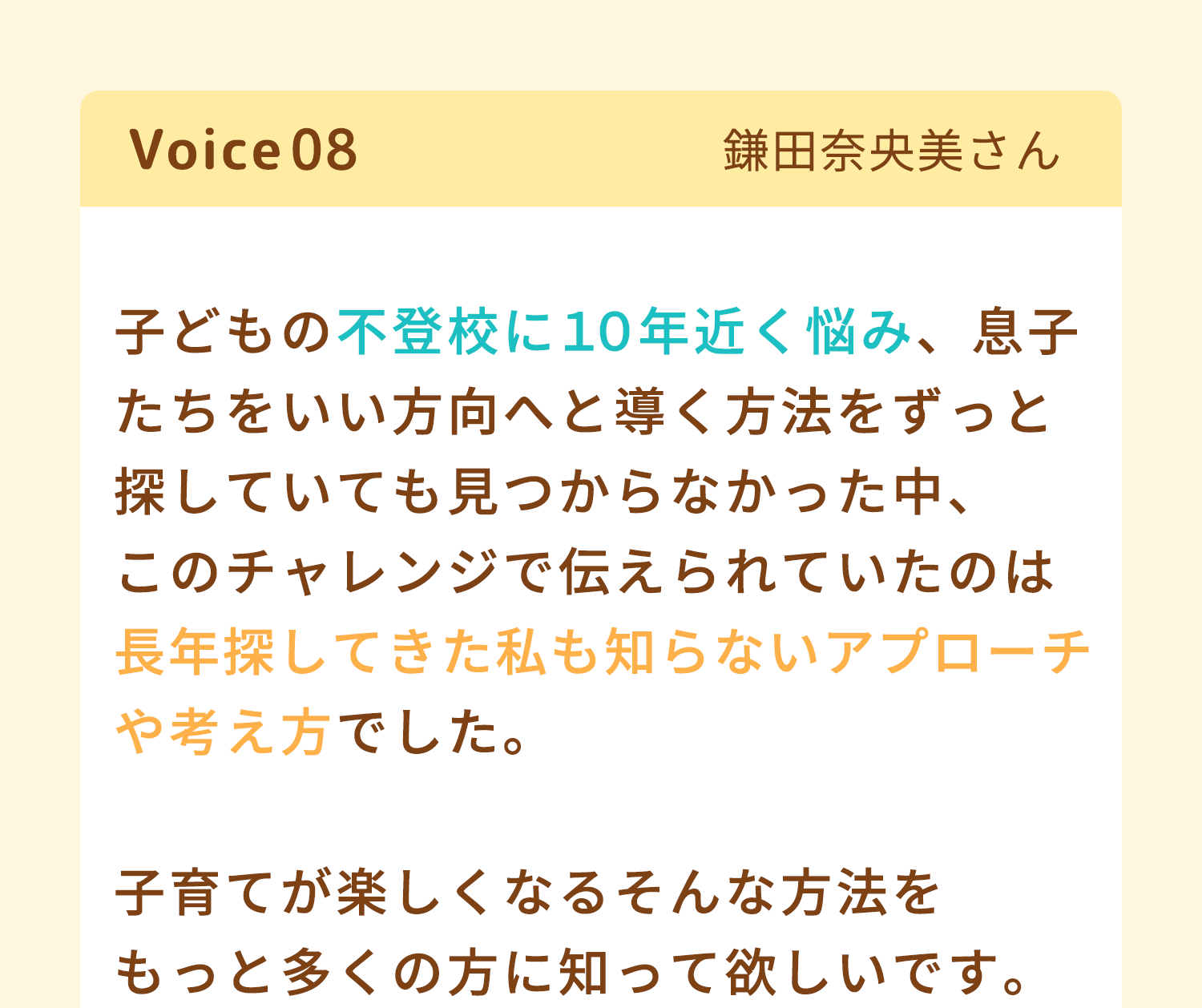 このおかげで、私たち家族の絆が深められたのだと今は感謝の気持ちで思えるようにまでなれました。