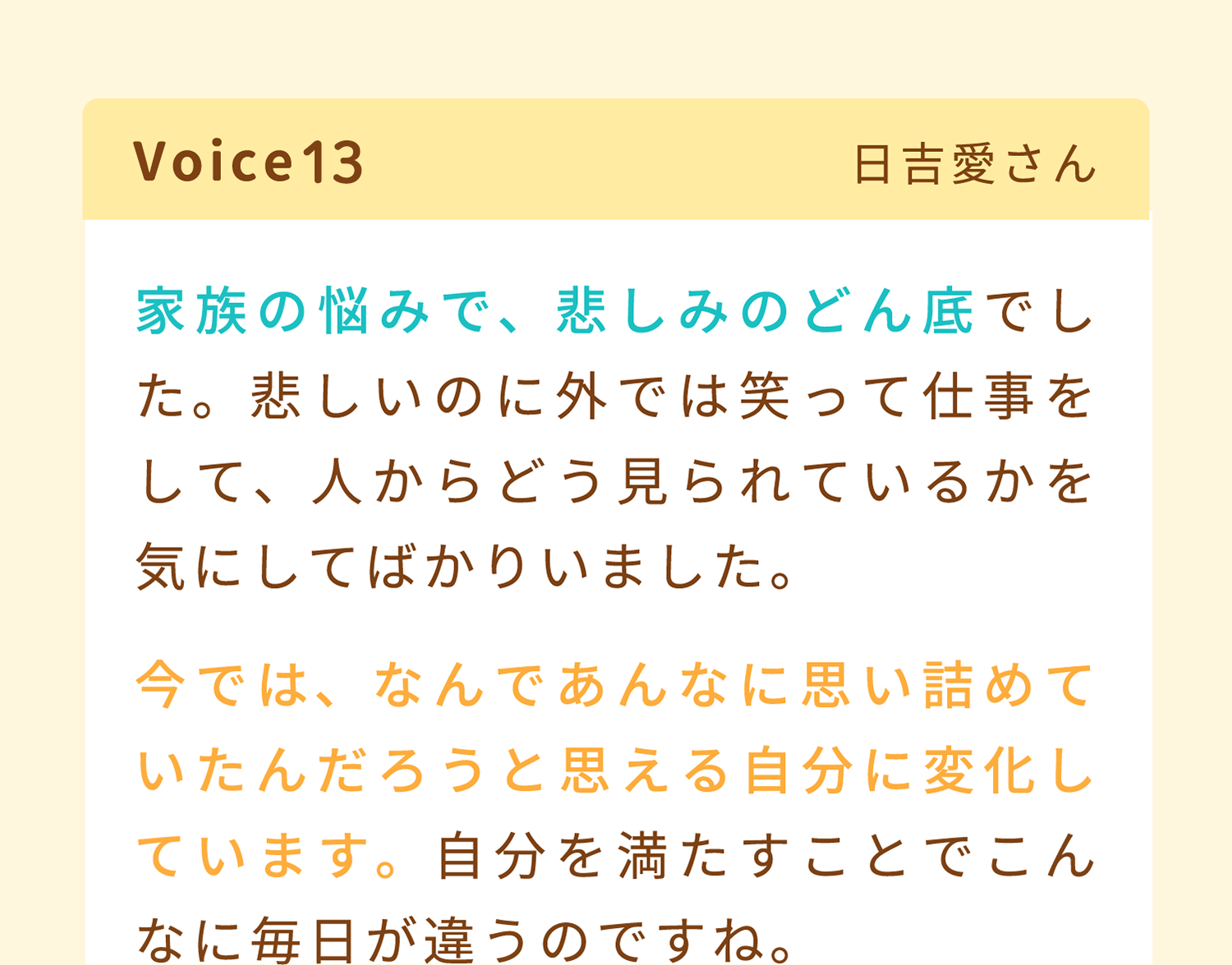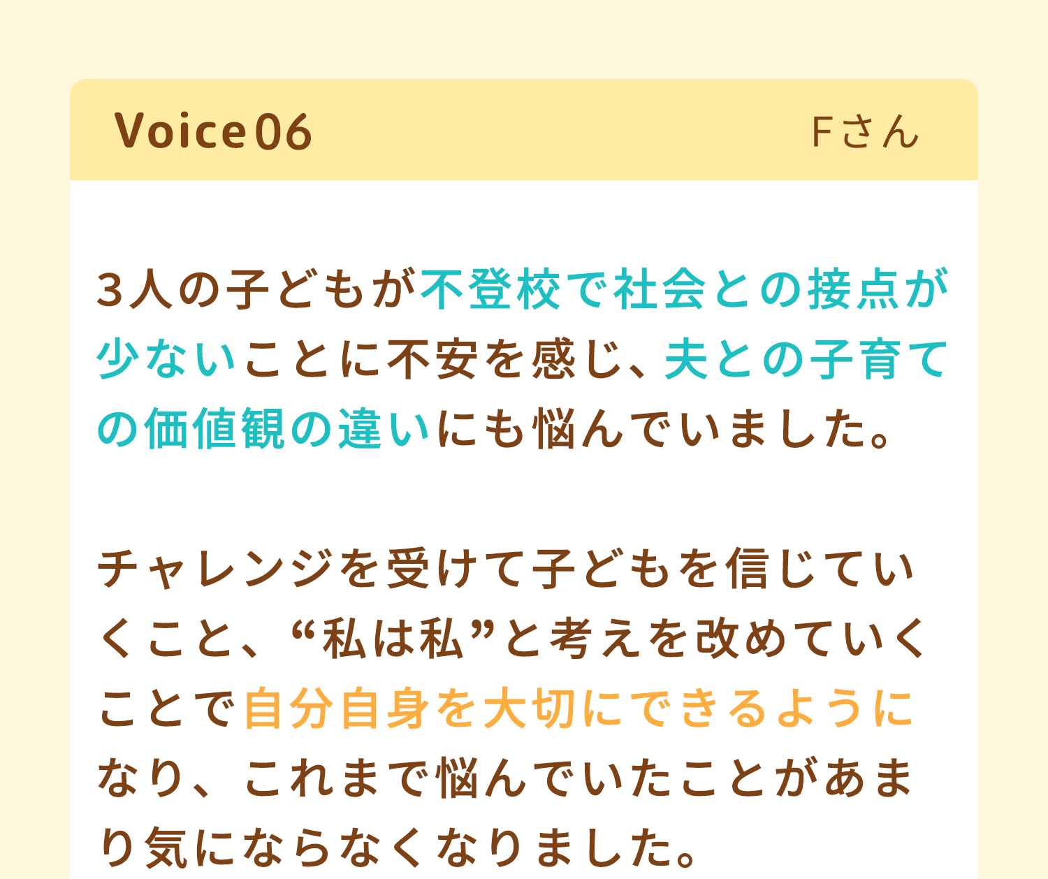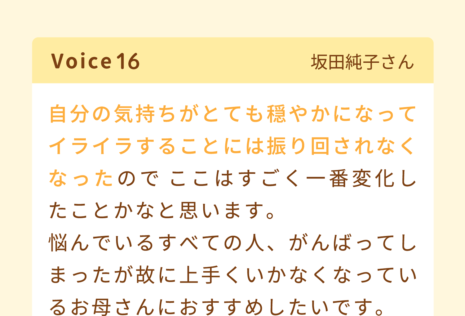 母親である前に一人の人間として認めていただけた時は、あふれる涙を止めることができませんでした。
