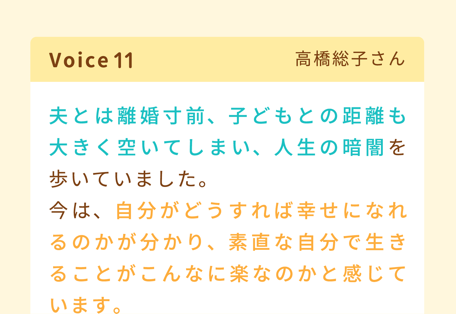 心配事がなくなり、私という人生にチャレンジできるまでに