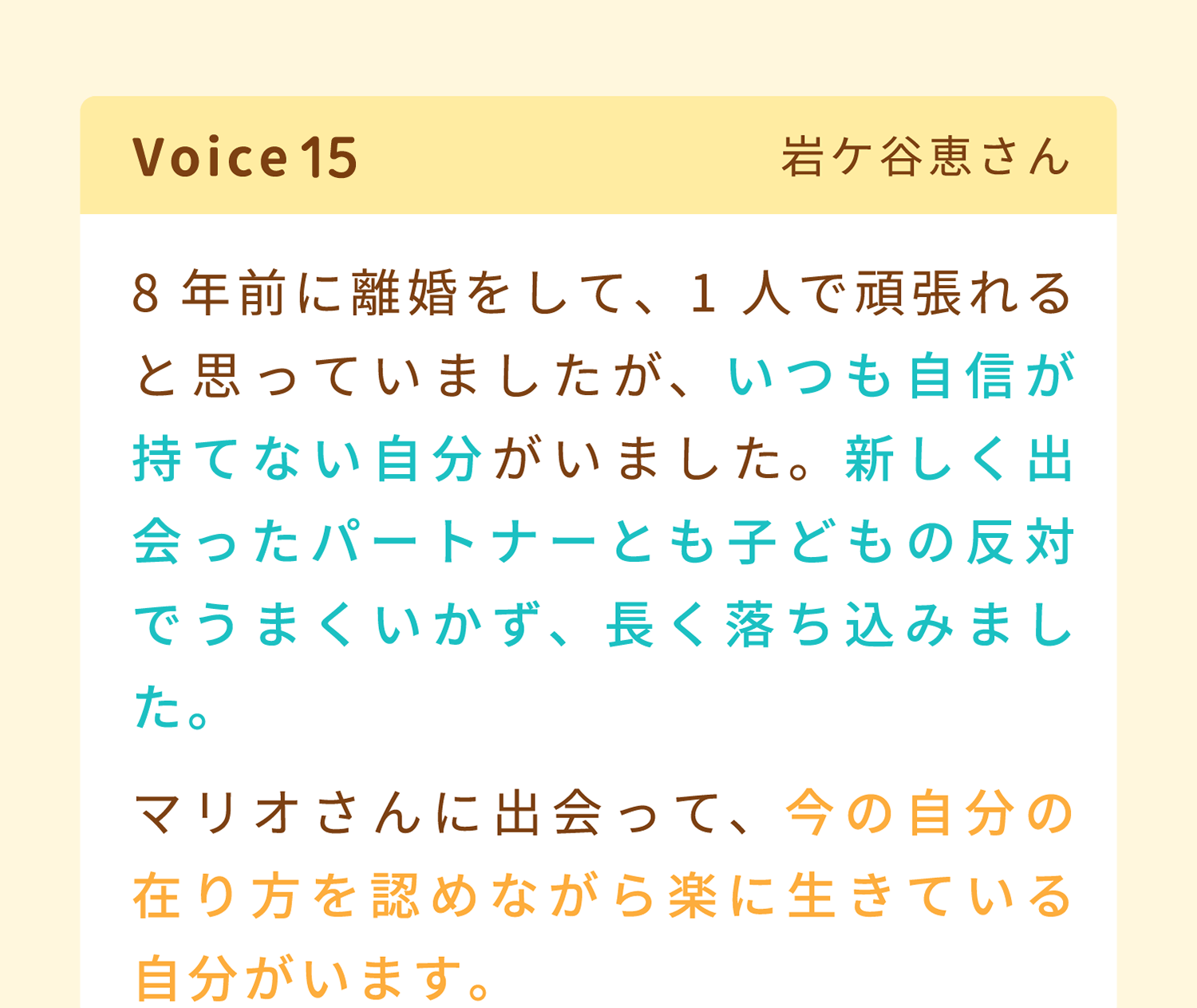 あの時、マリオさんと出会っていなければ、どんな人生を歩んでいるかなんて想像もしたくないです。